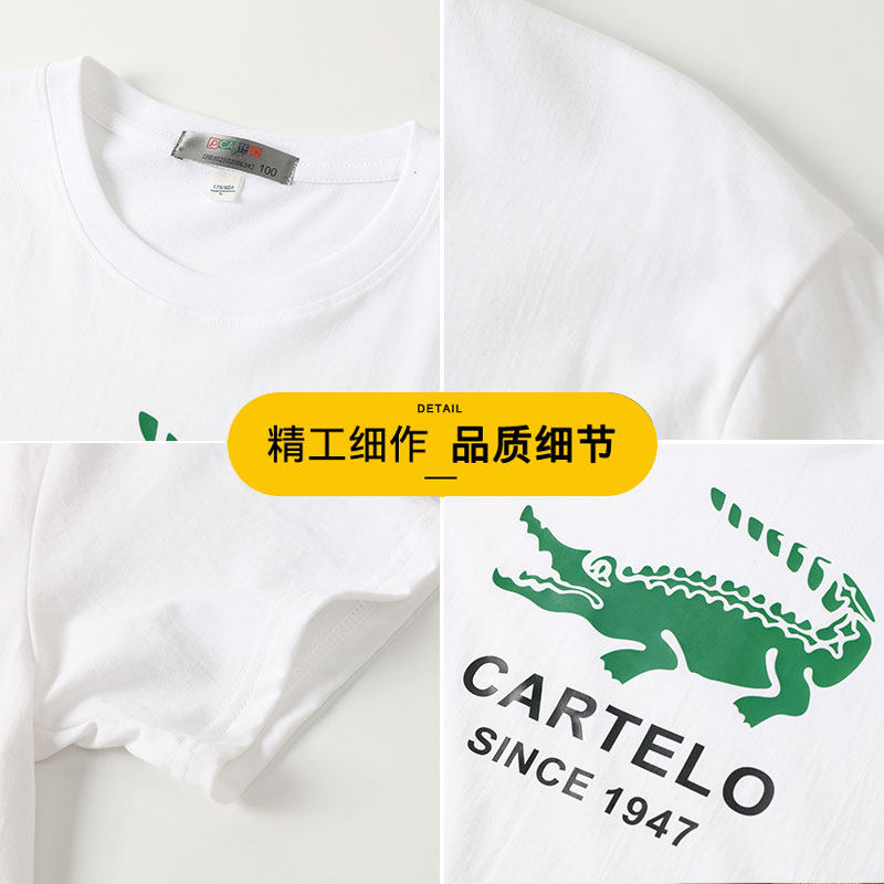 Crocodile T-shirt Male Summer Loose Casual Men's Clothing Pure Cotton Round Collar Fashion Printed Blouse T-shirt Man Short Sleeve Tide