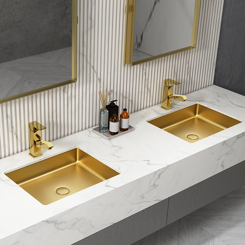Strong steel gold light luxury stainless steel square under-counter basin embedded washbasin home bathroom washbasin