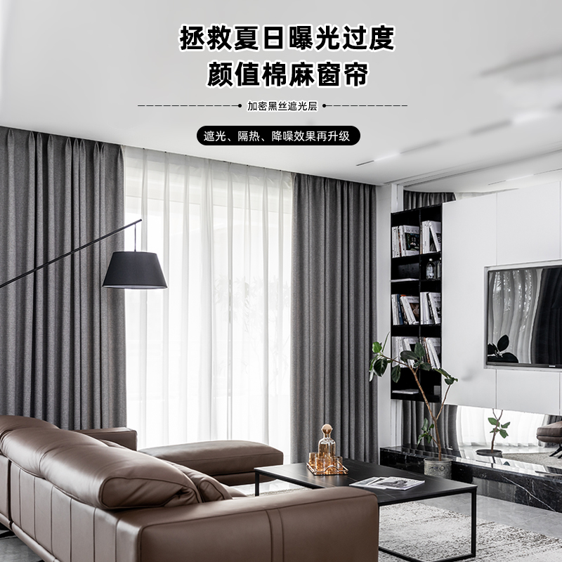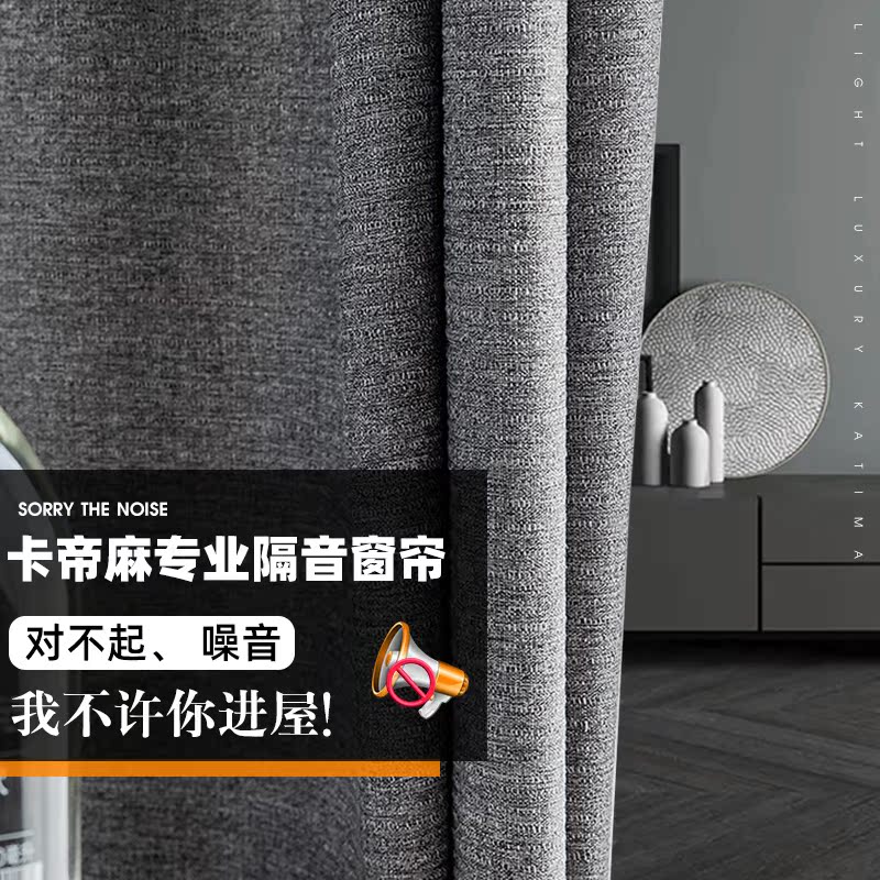 Bedroom simple curtain professional sound insulation noise reduction hook type thickened cotton linen shading sun insulation 2021 new