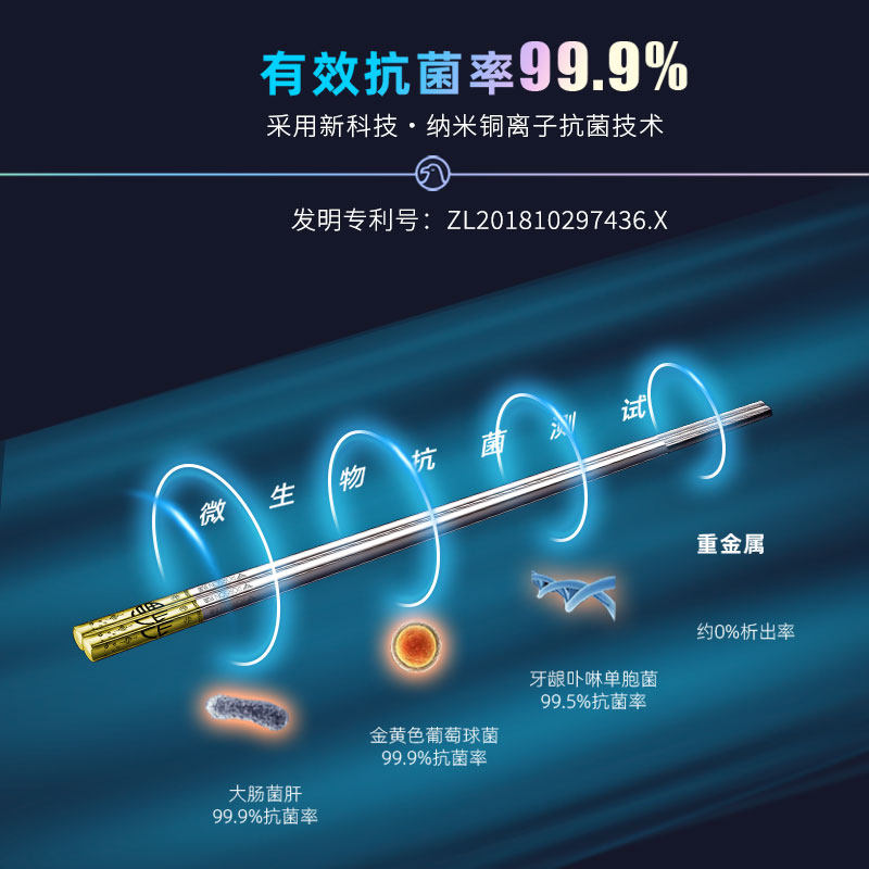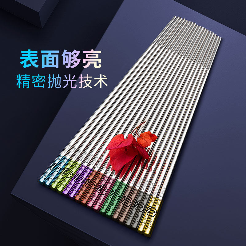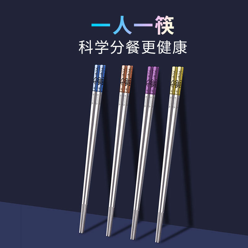 German antibacterial colored chopsticks, stainless steel anti slip household chopsticks, 316 material high-end silver chopsticks