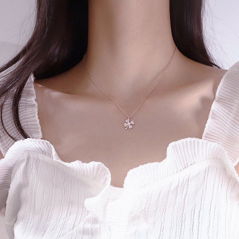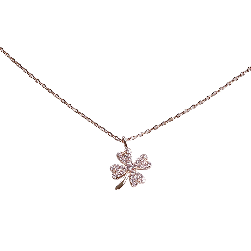 Four-leaf straw necklace (rose gold) four-leaf straw necklace (pure silver)
