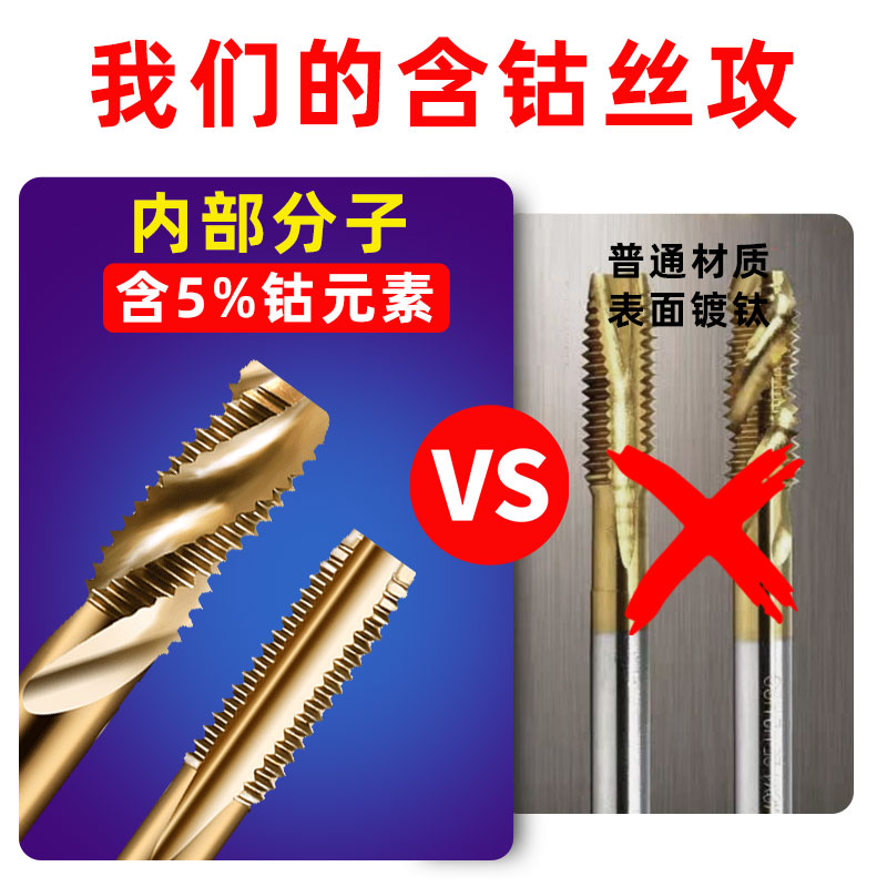 M35 cobalt-containing titanium-plated screw tapping apex spiral straight groove straight handle stainless steel special screw tapping superhard machine tapping drill