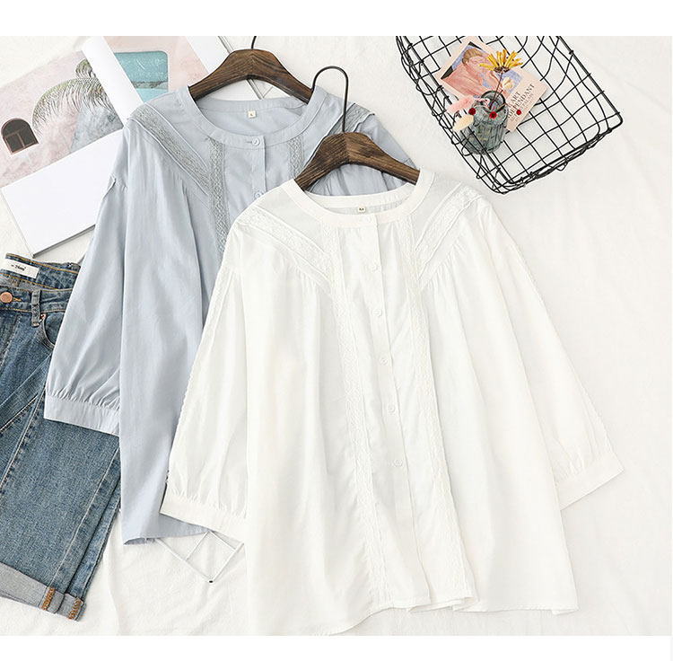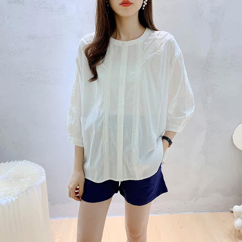 2021 Pregnant Woman Summer Dress New Lace Lace Floral Lace White 70% Sleeve Shirt Woman Han Version Loose Middle Sleeve Polo Shirt
