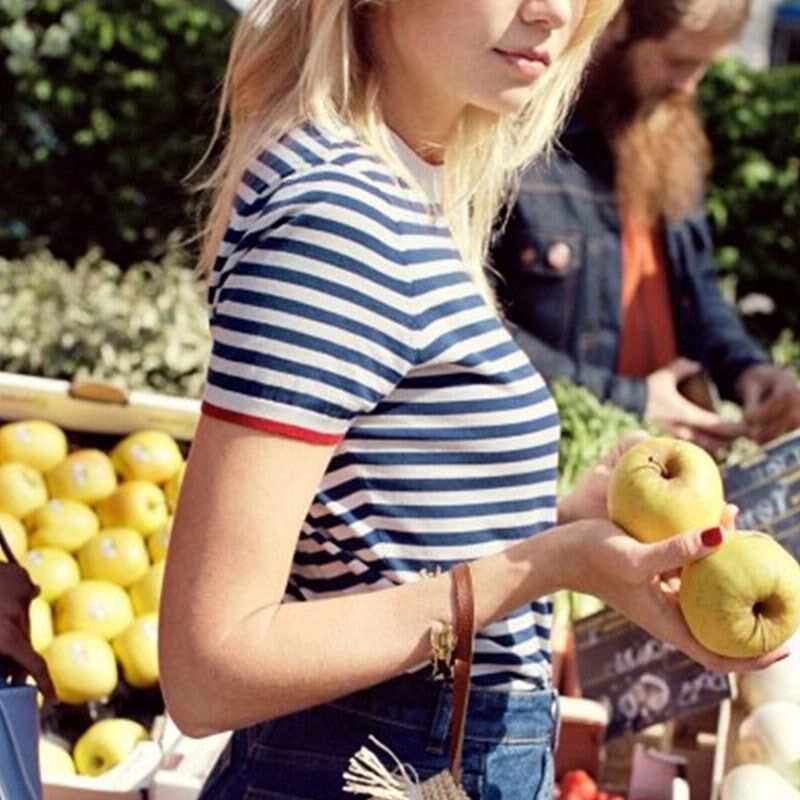 Brother's new women's dress official web 2022 Summer Navy Stripes Thin Knit Ice Silk Short Sleeve T-shirt Woman Thin