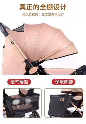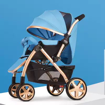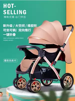 Baby trolley high landscape can sit, can lie down, two-way shock absorber, light folding and widening large wheel baby walking baby car