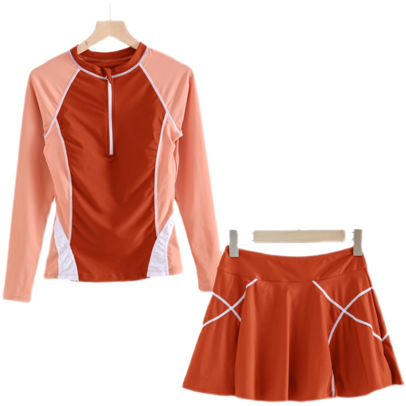 Swimsuit Woman two piece long sleeve skirt four corners student sports sun-proof swimsuit conservatively thin large size with chest pad