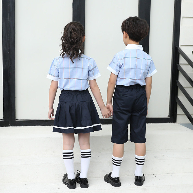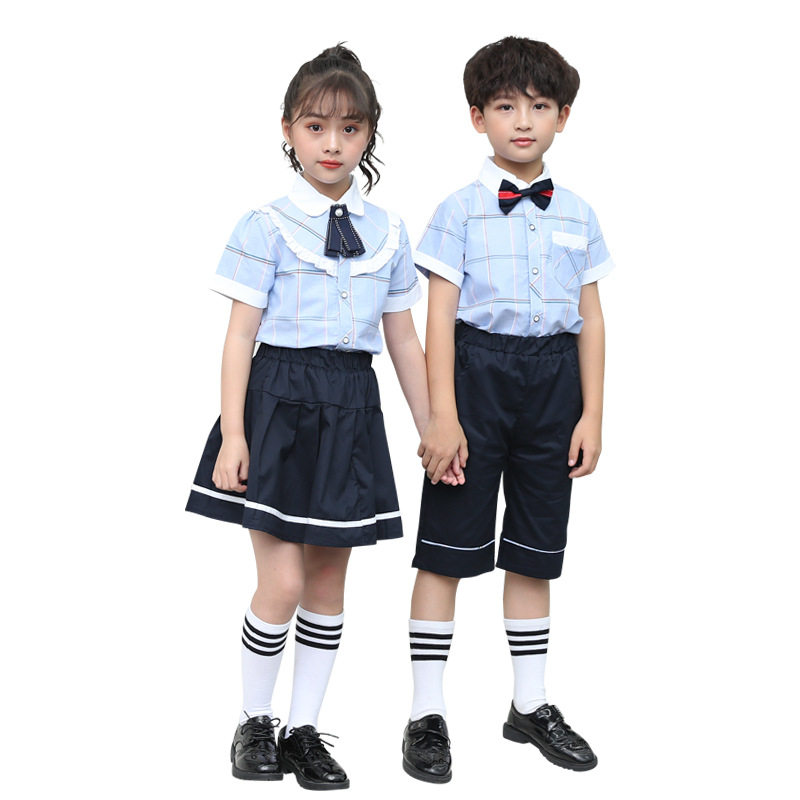 Summer New ZhongYoung Children's Class Square Shirt School Uniform British Wind Two Pieces of Kindergarten Clothes