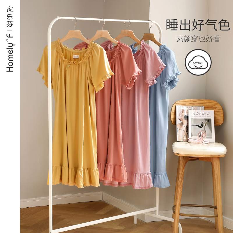 2022 New Sleeping Dress Lady Sleepwear Summer Summer Pure Cotton Short Sleeves Slim big size Long version Princess Wind