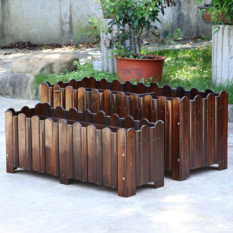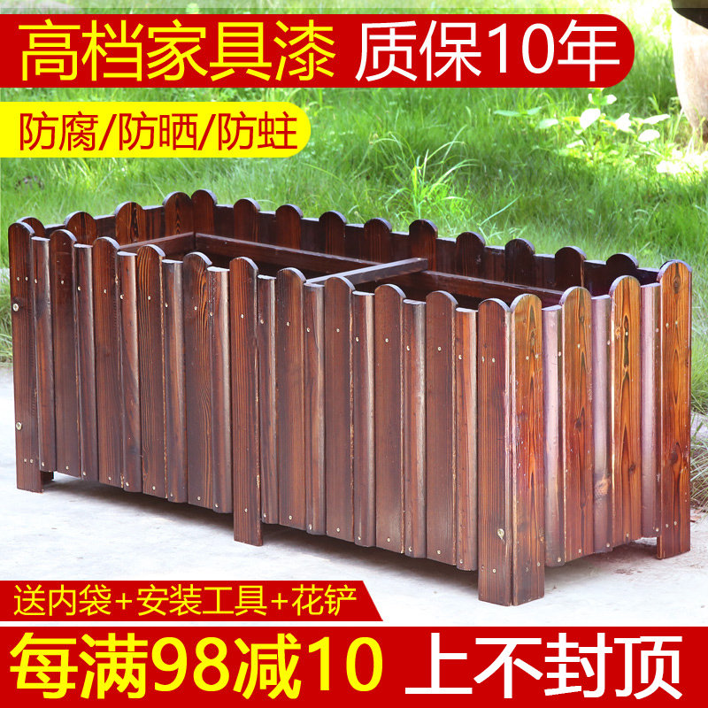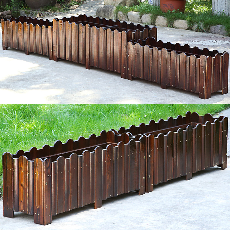 Outdoor anti-corrosive wood flower case Courtyard Planting Box Decarbonated Wood Flowerpots Rectangular Planting Box Outdoor balcony Seed Box