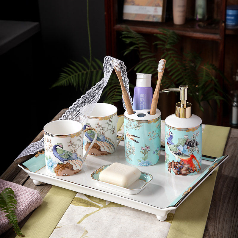 Hundreds of birds pray purple-bathroom five-piece set-gift box Hundreds of birds pray blue-bathroom five-piece set-gift box Hundreds of birds pray purple-bathroom five-piece set with tray Hundreds of birds pray blue-bathroom five