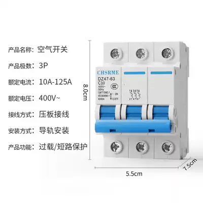 () Three-phase electric 380V Air switch DZ47-63 small circuit breaker 3P4P open