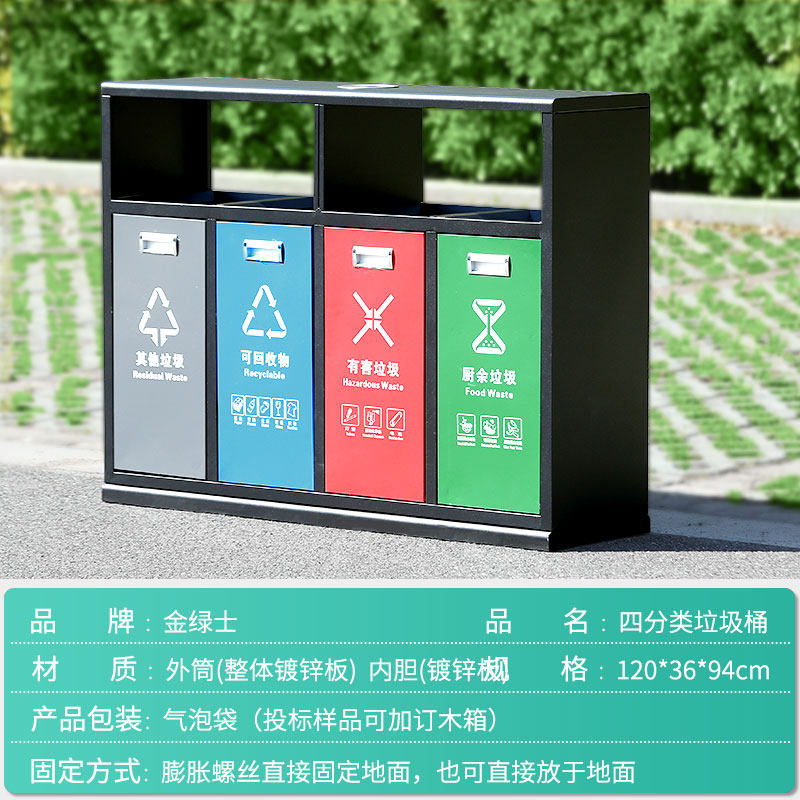 Outdoor trash can stainless steel peel box sanitation large garbage classification three or four community double slot outdoor environmental protection bucket