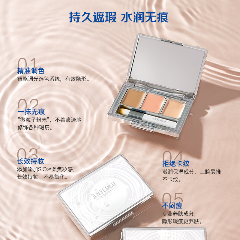 Anycoco tricolor concealment to cover face spotting pox freckles black eye cover huge masking paste moisturizer