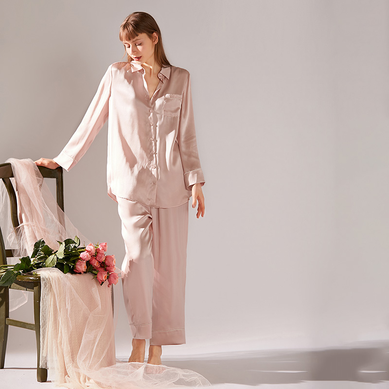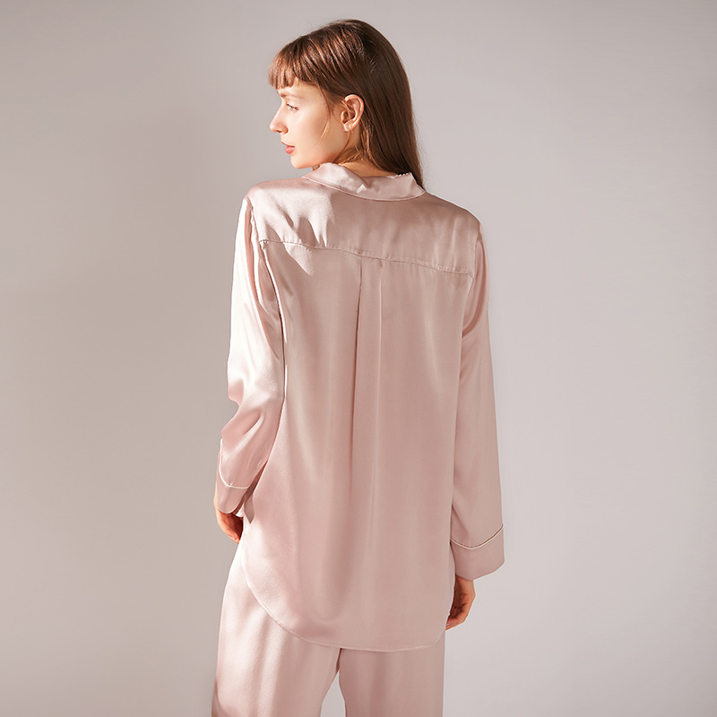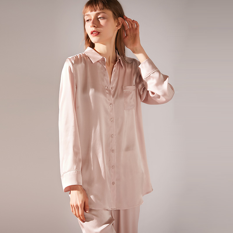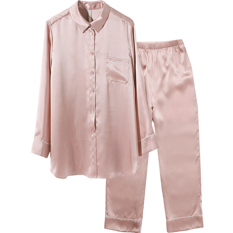 XEXZ pajamas women's 2022 new long-sleeved two-piece mulberry silk home service high-end silk shirt suit