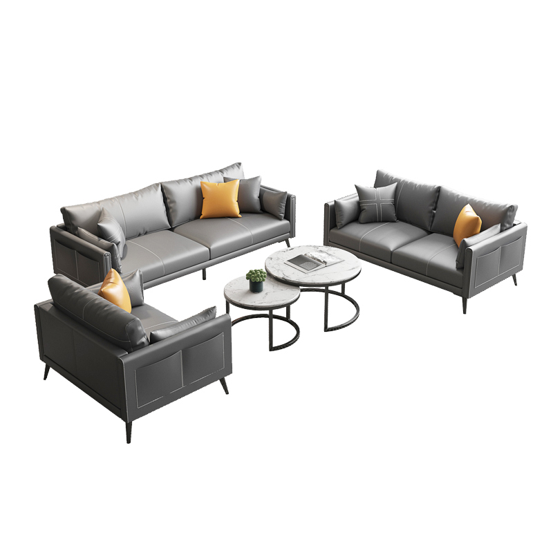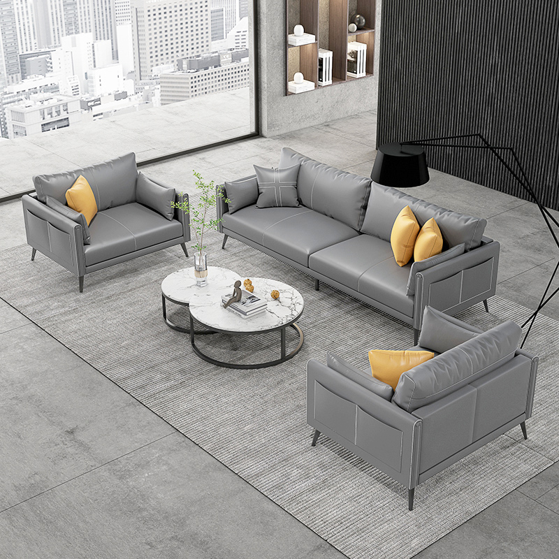 Office sofa tea table combination suit fashion minimalist modern guest business reception light lavish genuine leather trio place