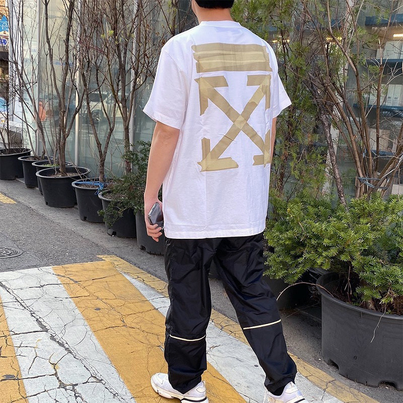 Vicxx Out of OW Style Adhesive Tape Arrows Print Tide Card Hip Hop Loose Spring Summer New Couple Short Sleeve T-Shirt Man
