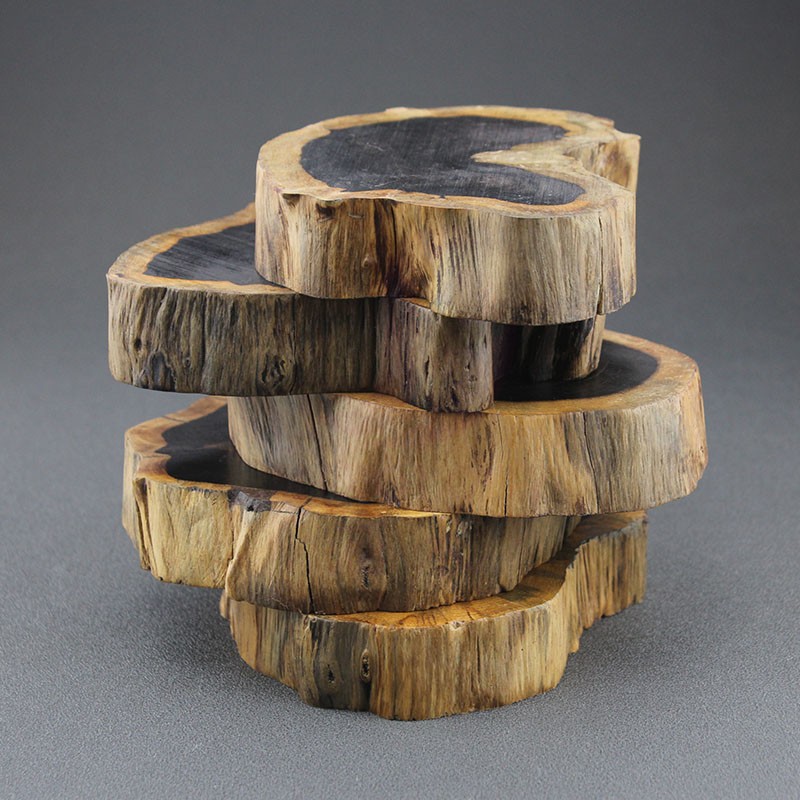 Wine bar bartending special smoked wood coaster molecular cocktail natural log pad wood pier wood block pad