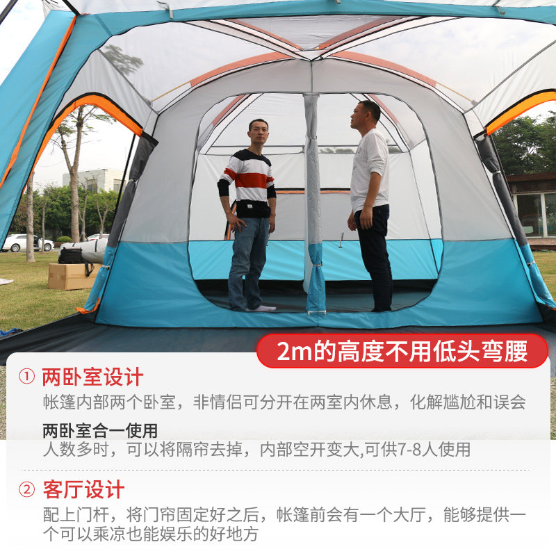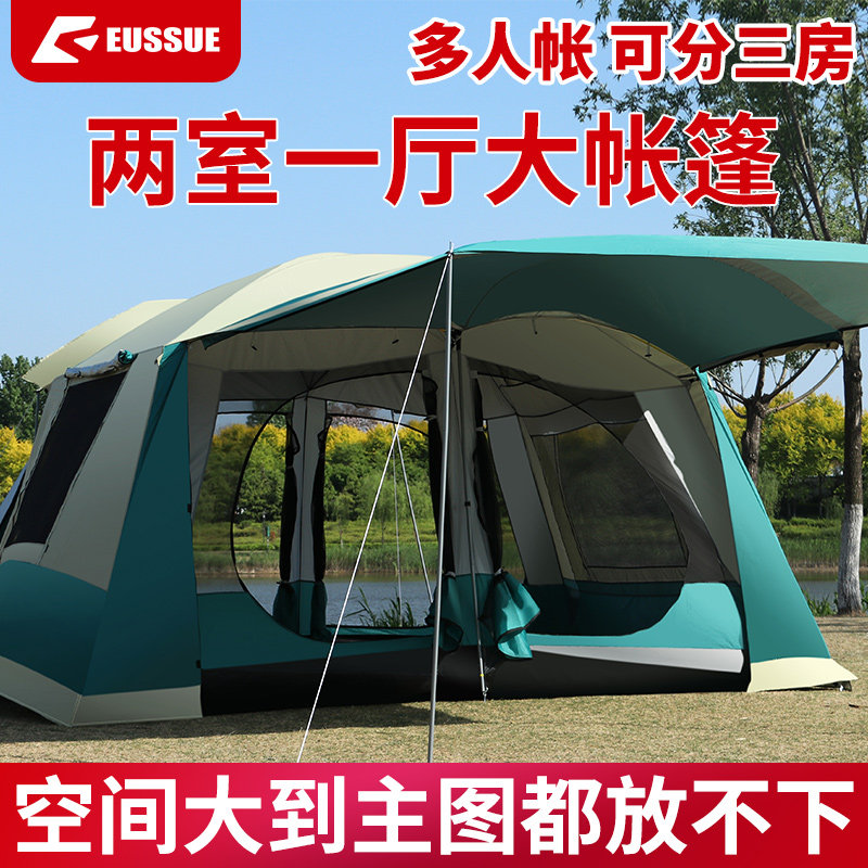 EUSSUE camping tent outdoor camping thickened Anti-rain park Multi-person luxury villas Large two rooms One hall-Taobao
