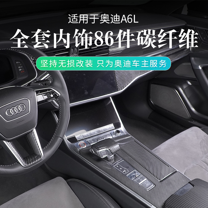 19-21 A6L full car carbon fiber pattern 86-piece set 8 pieces of steering wiper cruise control lever 1 piece of steering wheel U-shaped 1 piece of decorative stickers under the instrument panel 2 pieces of instrument panel decorative strips Air outlet