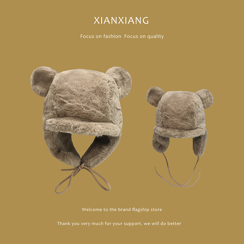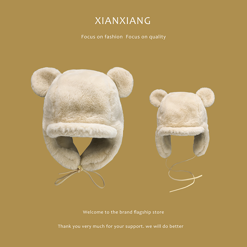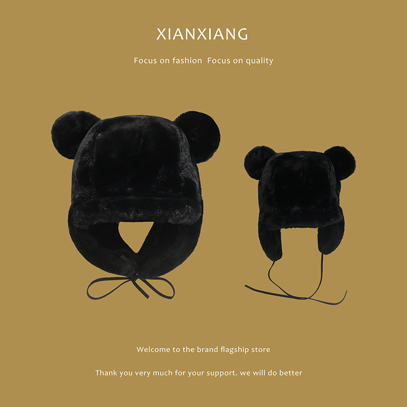 Japanese winter ear plus thickening hat for children cute bear ears children cold-proof plush lei front cap