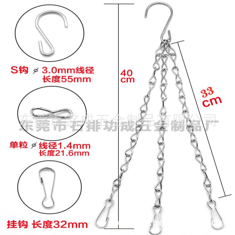 Black three-piece eight-character iron chain 40CM garden flowerpot flower basket hanging chain hanging birdcage plant potted chain