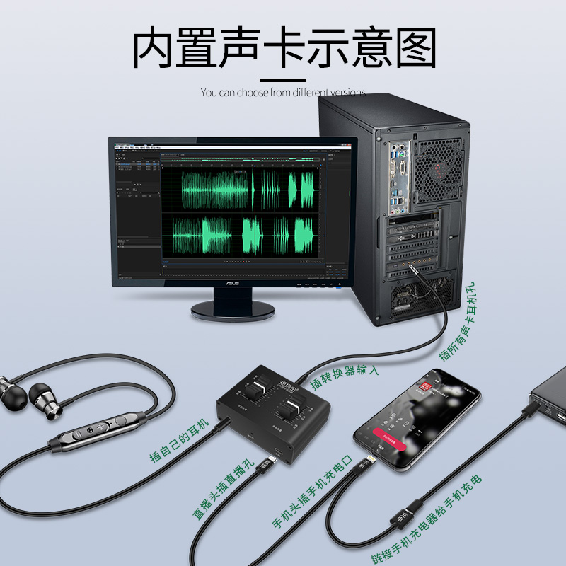 Broadcast bug live No. 1 computer sound card converter mobile phone live connection line inside and outside for Apple Android