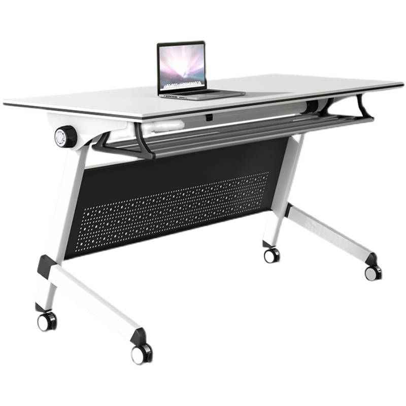 Folding meeting table Multi-functional splicing strip table training table and chairs Combined movable staff desk side turning table