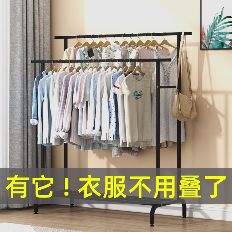 Hanger Rack Shelve Multifunction Drying Rack Home Floor Bedroom Hanging Clothes Rack Double-Lever Indoor Simple Cloakhat Rack