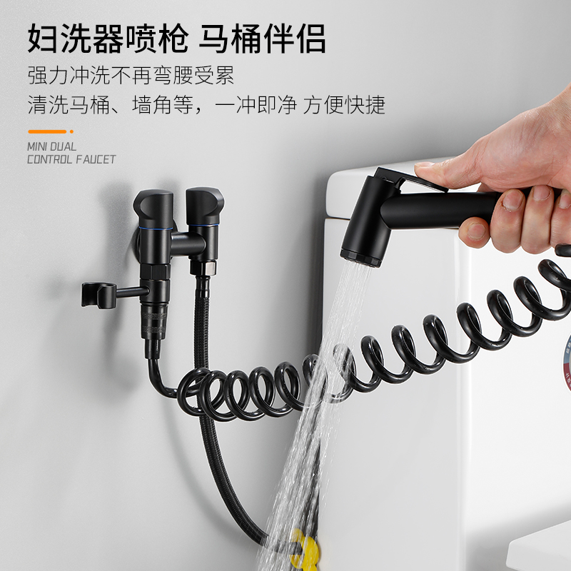All copper flusher toilet spray gun black one in two out female washer set washer washing machine faucet