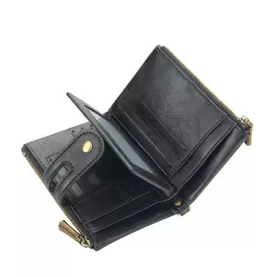 New men's short wallet Japanese and Korean retro double zipper bill clip coin wallet solid color horizontal multi card wallet