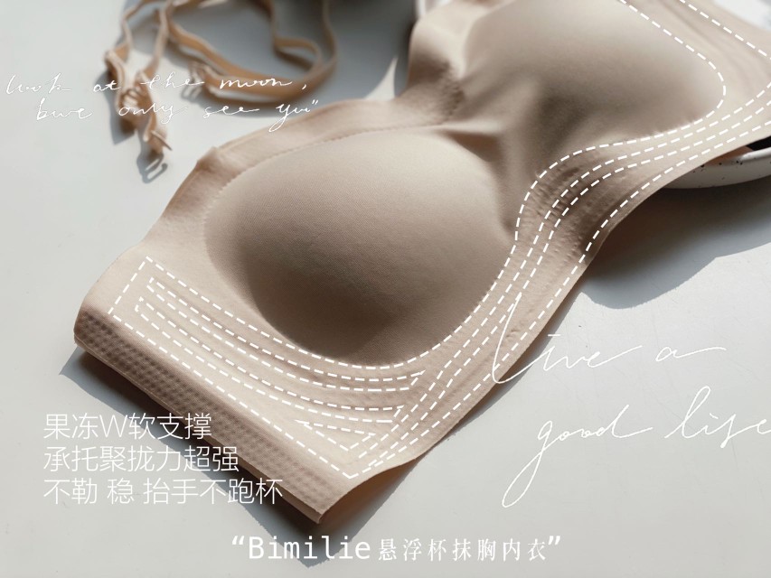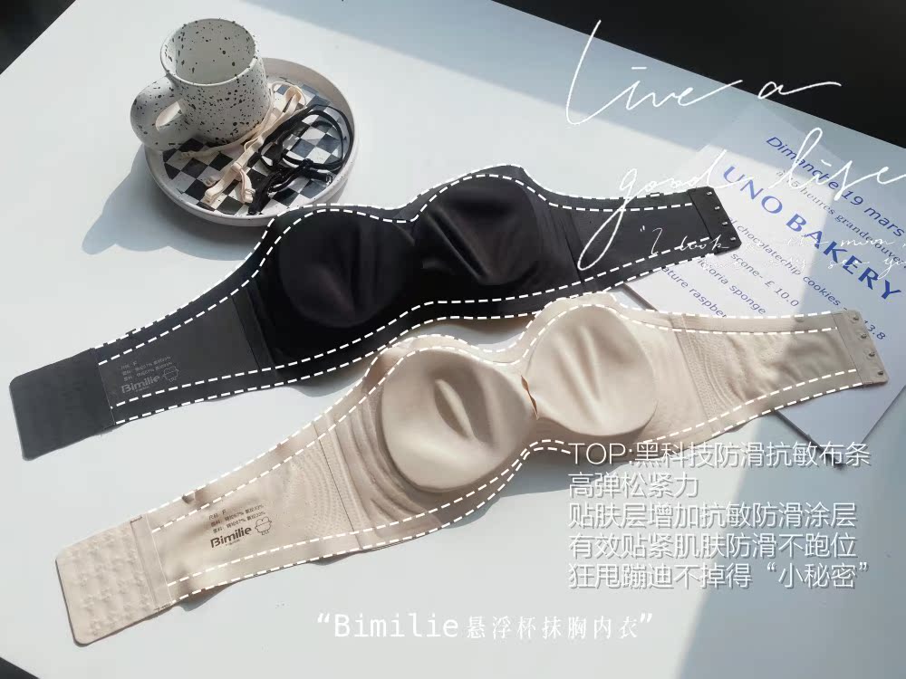 Bimilie suspension cup one word invisible tube top underwear summer thin strapless bra strapless non-slip