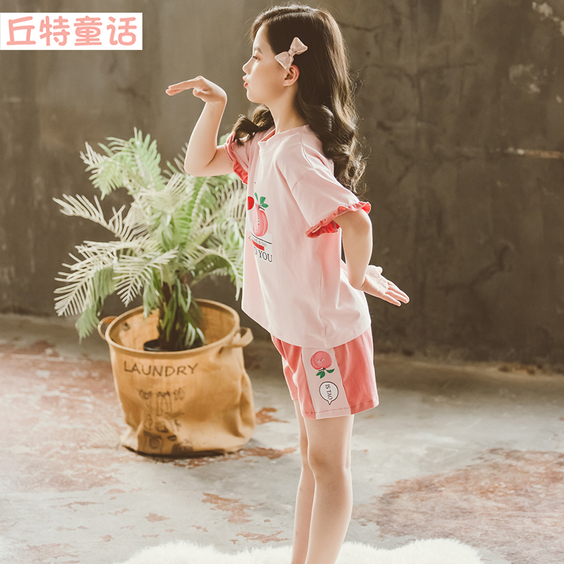 Girls Summer Cotton Pajamas Children Baby Short Sleeve Suit New Girl Student Home Clothes Air Conditioning Clothes Cartoon
