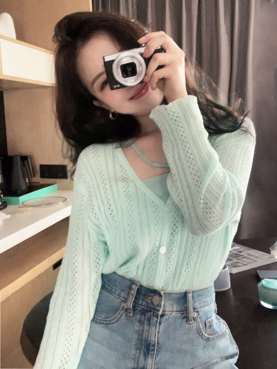 TMH Studio Moon Icelandic sun - proof sweater thin female summer V - collar wearing a knitting coat