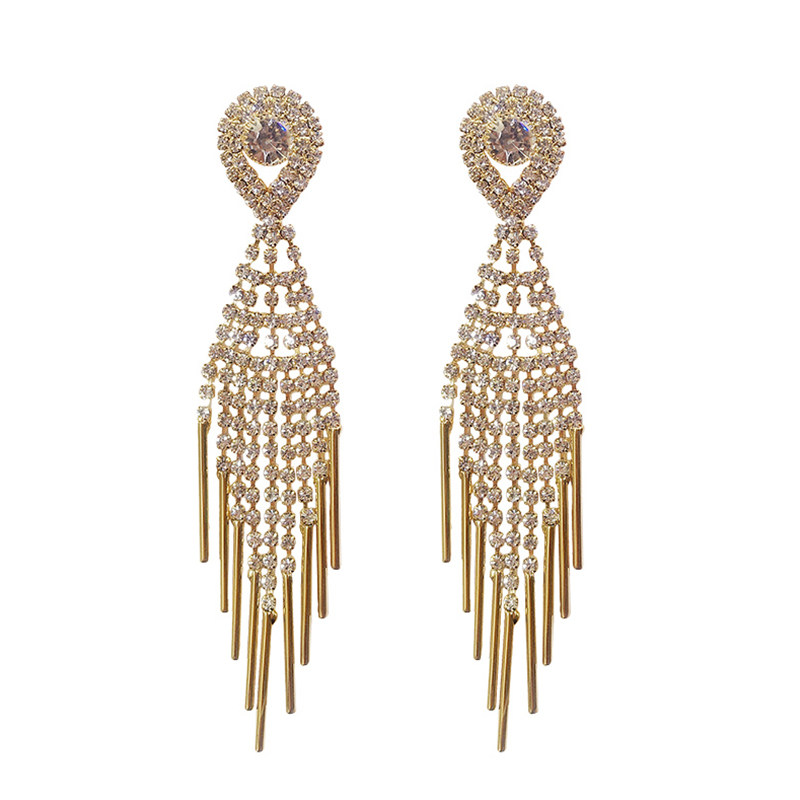 Full drill earrings 2022 The new long version of the stream Supure silver earbuke with a high sense of superior round face and a thin ear trim
