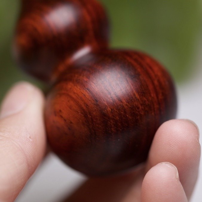 Finger twist fine leaf red sandalwood gourd handle piece Fu Lu Shou carry bag hanging text play ornament