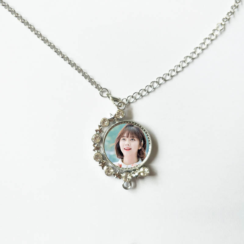Thermal transfer inlaid drill swivel necklace Double face Ingram DIY photo women Commemorative Gift Blank Necklace Consumables Wholesale
