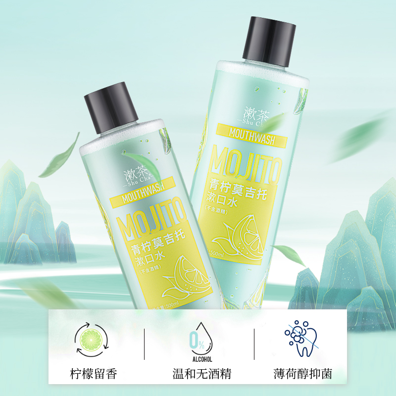 Gargle tea lime mojito 500ml mouthwash antibacterial fresh breath lasting fragrance boys and girls portable large bottle