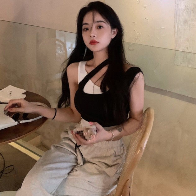 Mrs. Qian's home Sydney custom suspender design sense of niche outside wearing women's summer new fashion slim slim top (