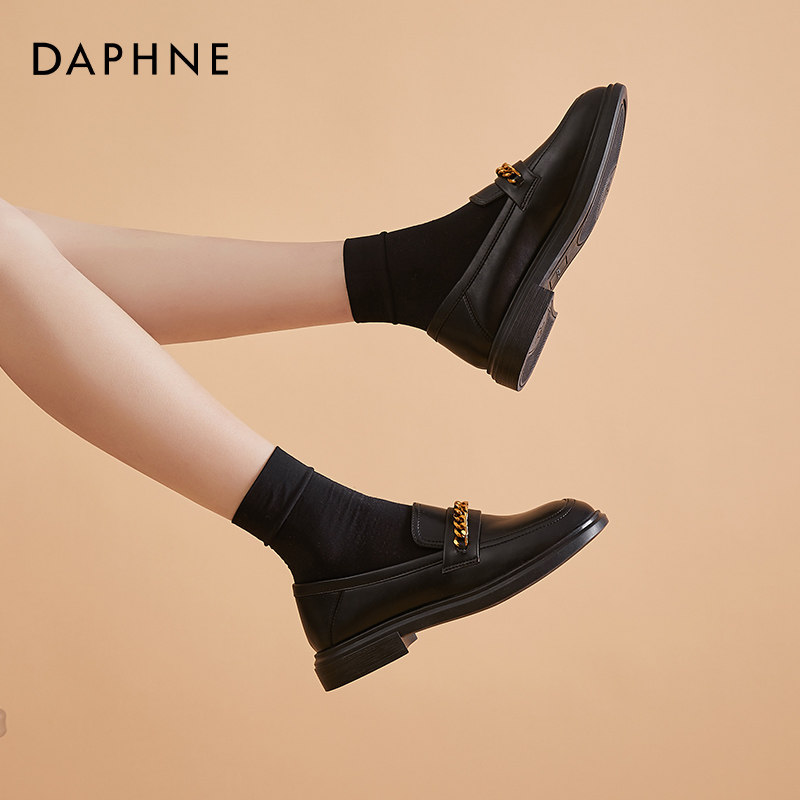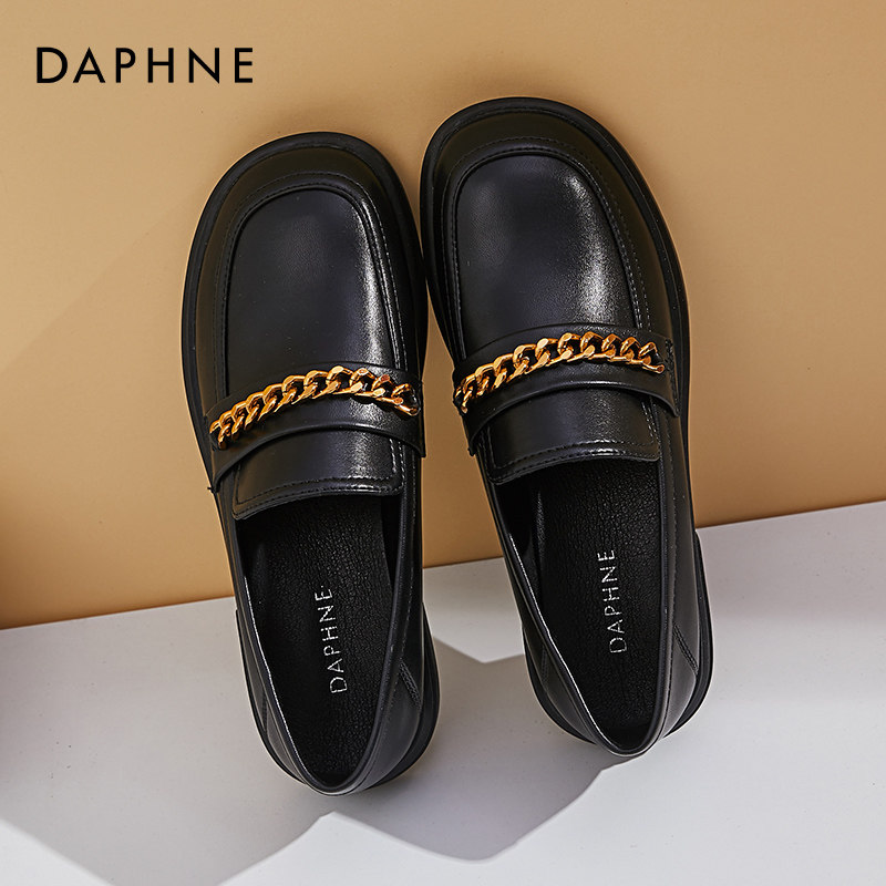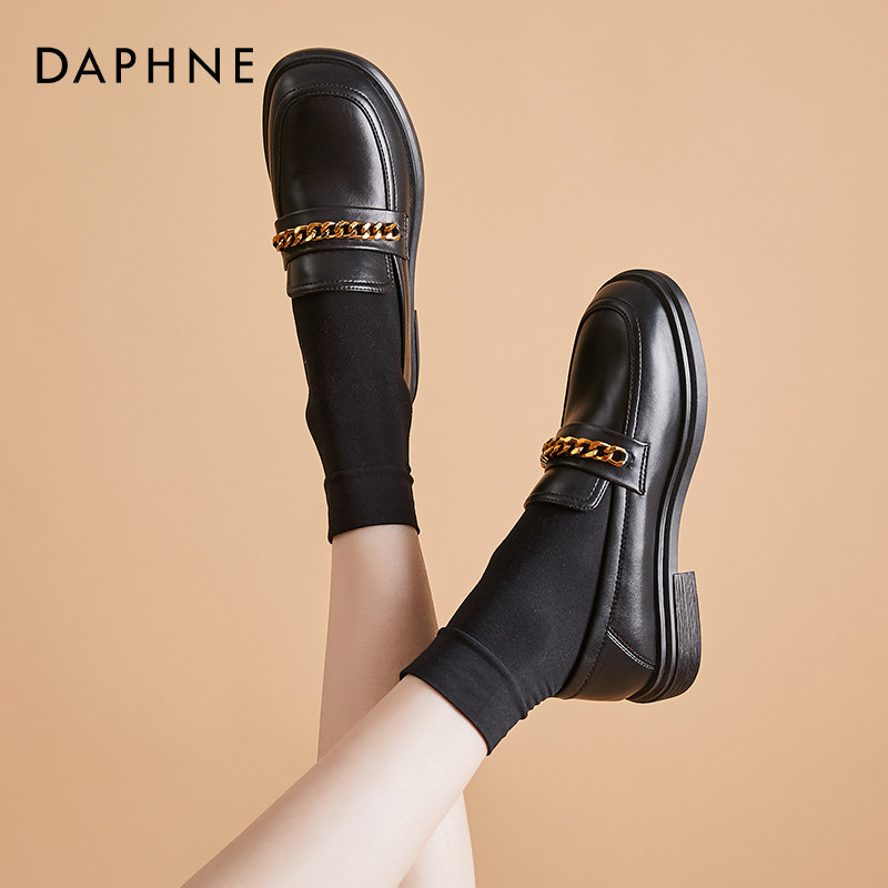Daphne black small leather shoes women's English soft leather spring and autumn loafers 2021 New flat shoes women's shoes