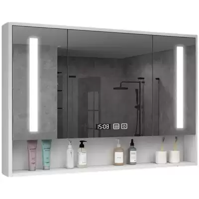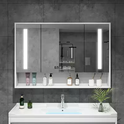 Smart bathroom mirror cabinet Solid wood with lamp powder room storage storage mirror cabinet integrated wall-mounted mirror with shelf