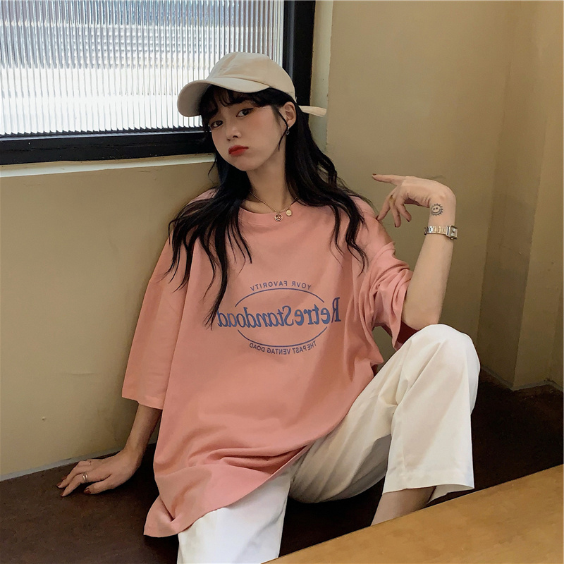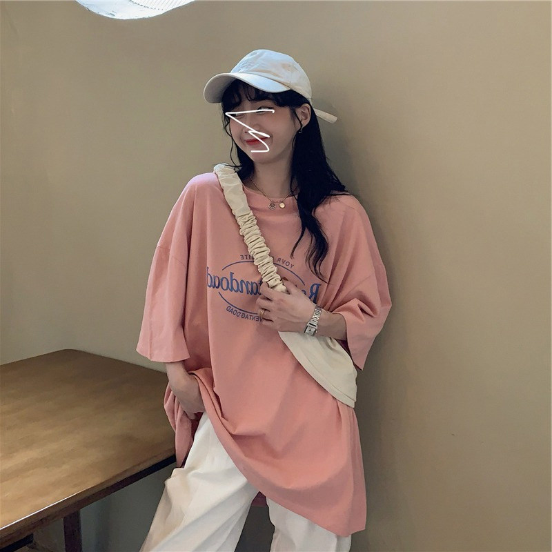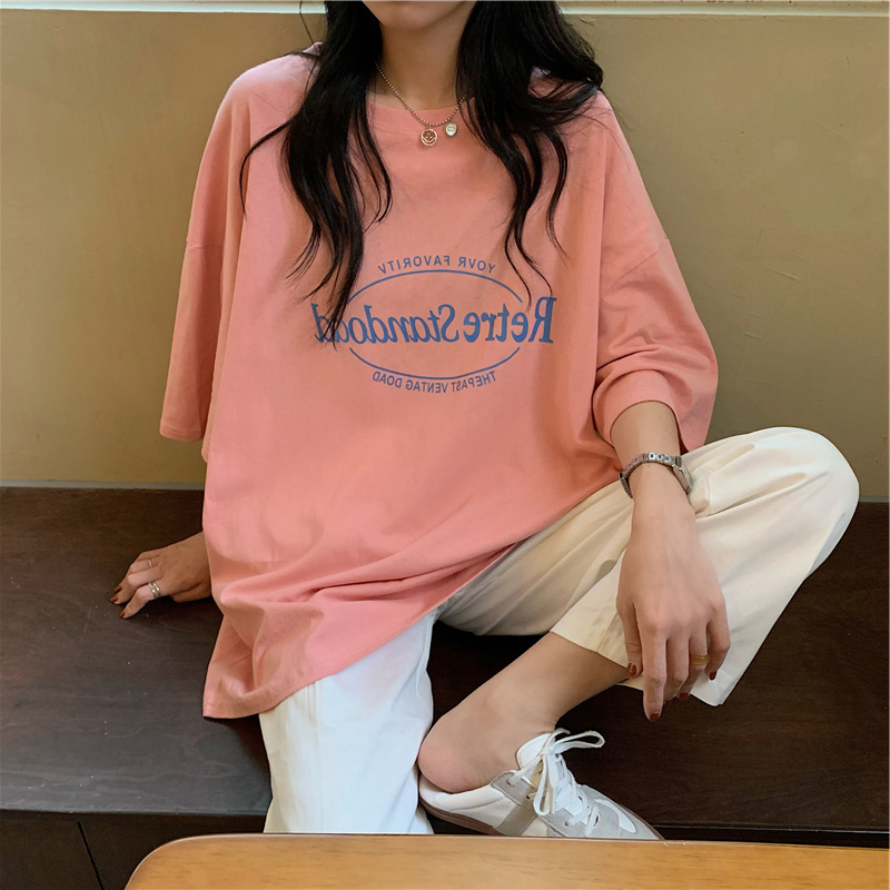 BF style design sense summer new 2022 pink short-sleeved T-shirt women's lower body missing loose mid-length top