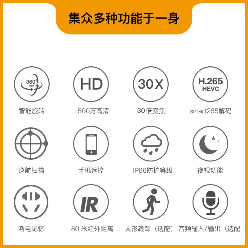 Outdoor 4-inch zoom dome camera 360 degree rotation Network high-definition camera 5 million pixels POE audio
