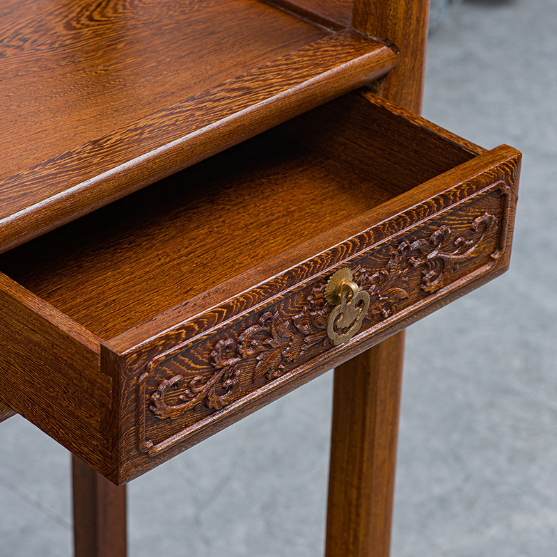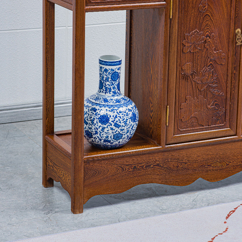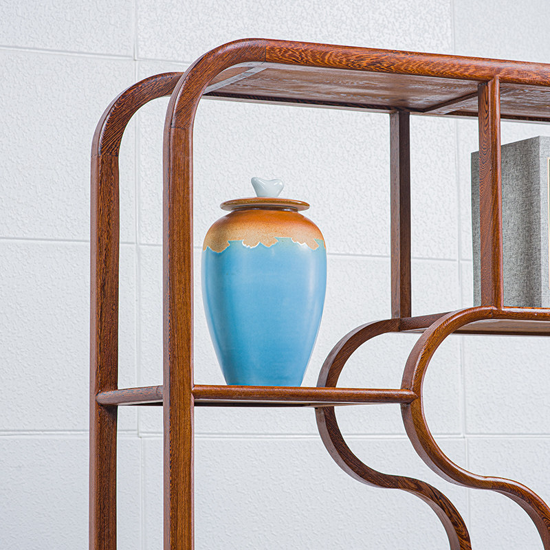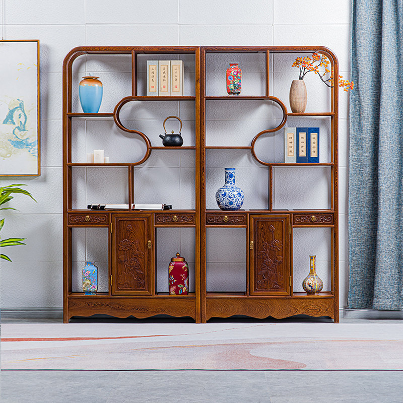 Mahogany furniture chicken wing wood Duobaoge tea display cabinet carved Bogu frame solid wood tenon and mortise rack antique rack