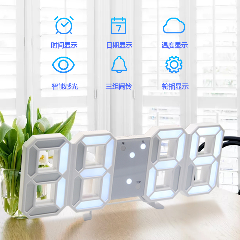 Creative alarm clock students use electronic clock mute living room wall clock home bedroom 3D digital clock smart luminous clock
