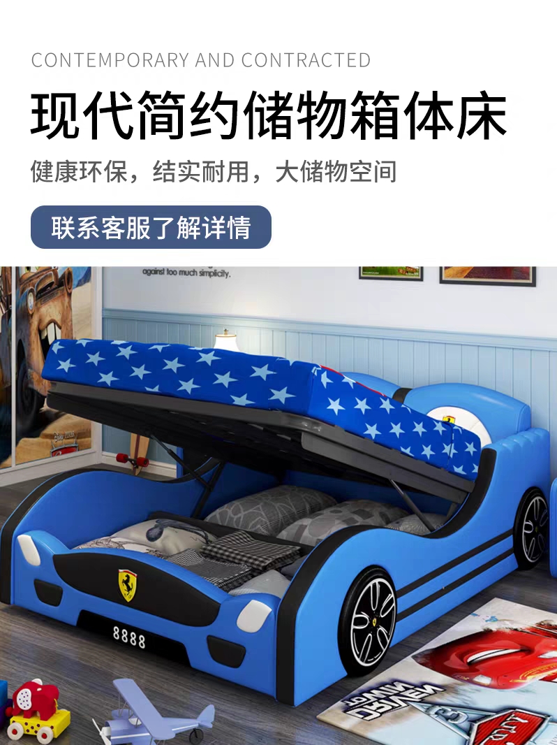 Children's bed boys and girls single - child car lathe box 1 5 m 1 8 real pickup cartoon with guardrail