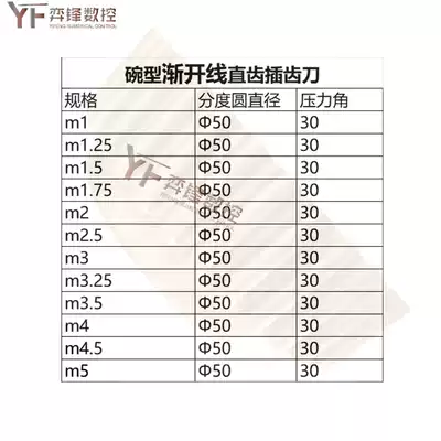 Class A Involute bowl-shaped bowl-shaped gear cutter Pressure angle 30 degrees Indexing circle diameter 50 M4M4 5M5-- - M12