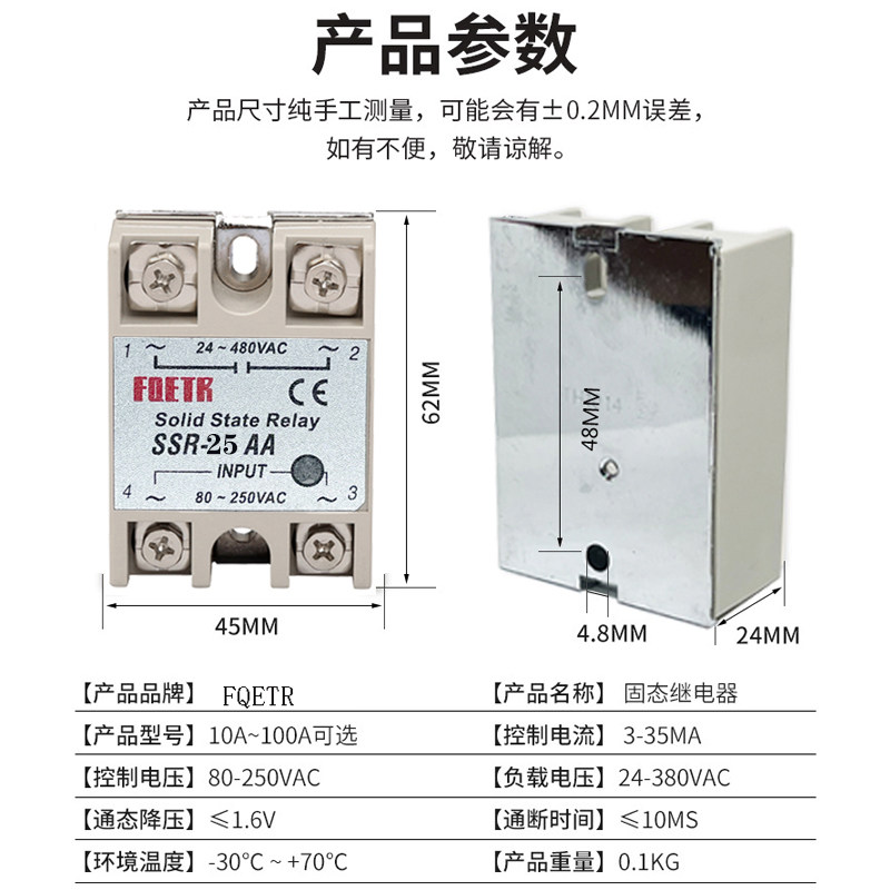 Solid state relay single-phase small solid SSR-25AA AC control AC 220V380V480V optical coupling