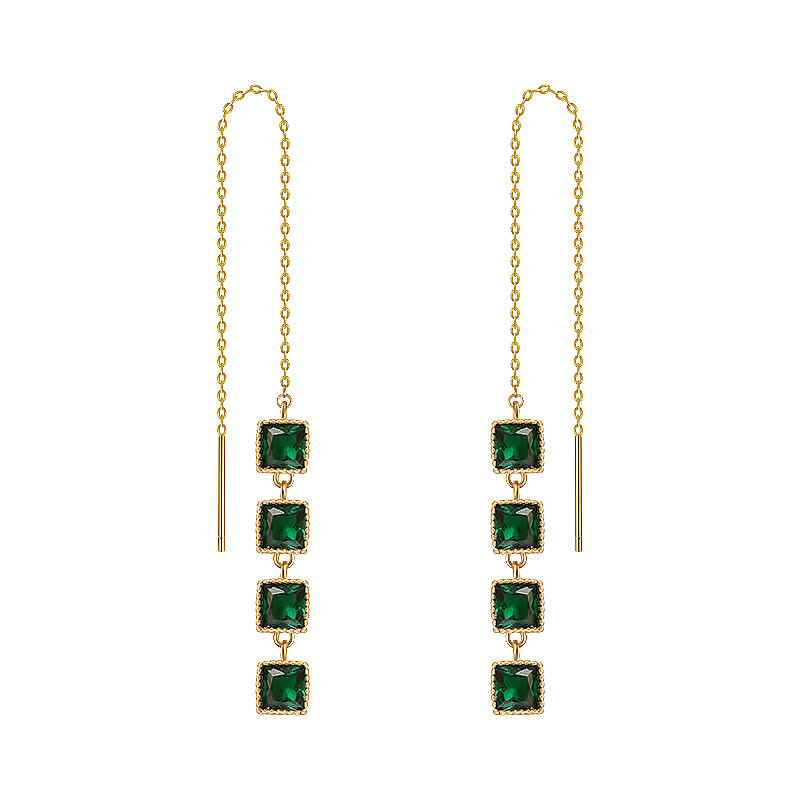 Ancestral Mother Green Tetris earrings female long section Flow Su Earrings 2023 New wave ear nail 925 silver needle ear pendant-Taobao