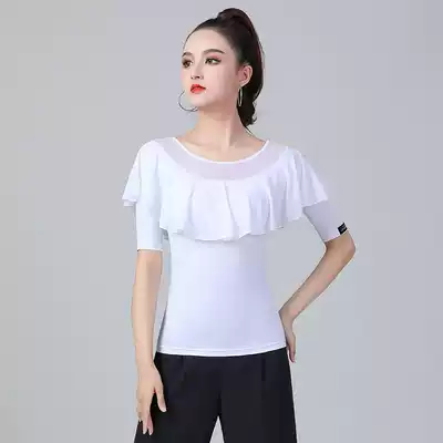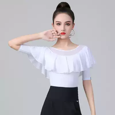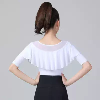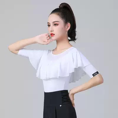 Danbaolo waltz top women's white ruffle dance suit mid-sleeve summer new national standard dance practice suit dance suit