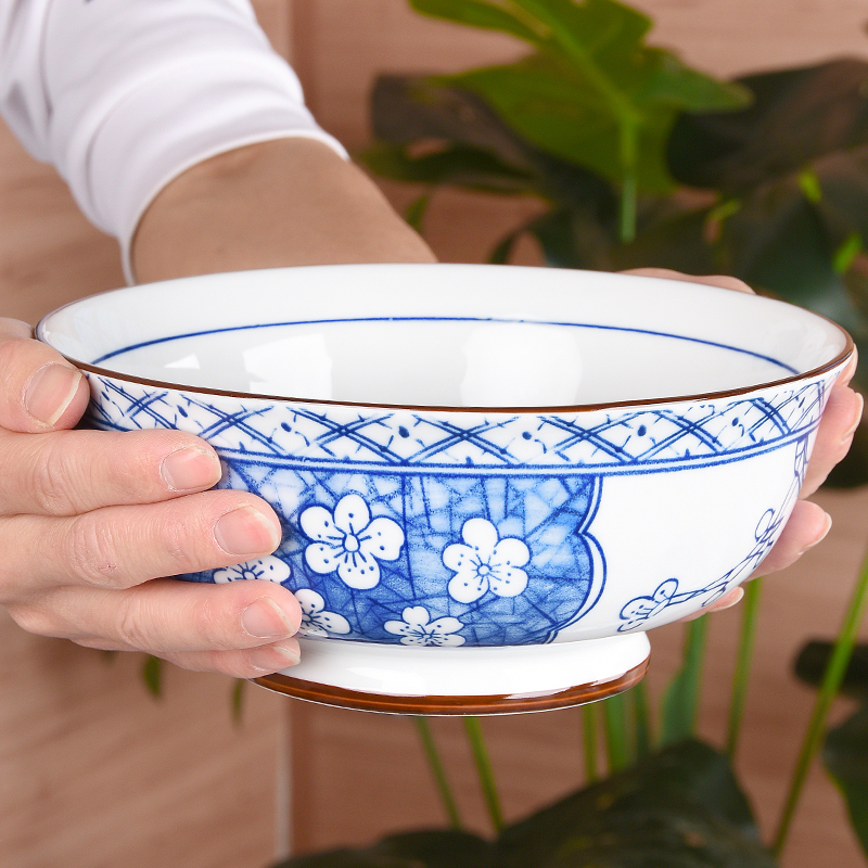 Day Style High Foot Anti-Burn Noodle Bowl Home Ceramic Eating Noodles Large Bowl 2021 New Soup Noodle Bowl Green Flower Porcelain Pull Noodles Bowl